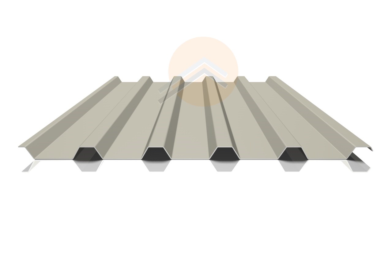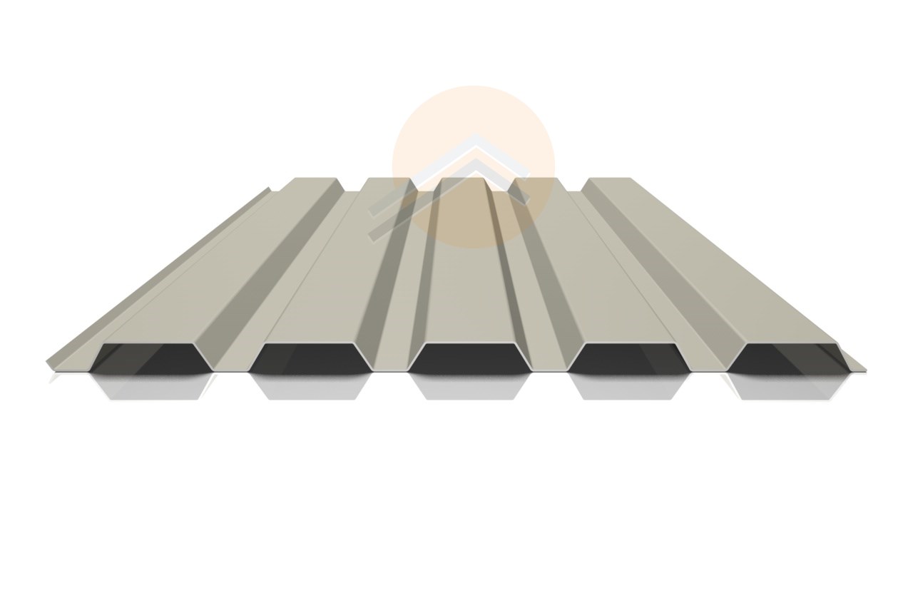 Die Rückseite beim Trapezblech 35/207 ist ein Rückseitenschutzlack (RSL) aufgetragen, der eine Schichtdicke von ca. 10- 15 µm hat, und aus Polyester besteht. Der RSL ist nicht RAL- Farben spezifisch festgelegt und kann von der Farbgebung (heller Grauton)nicht beeinflusst werden. Der RSL von Trapezblech 35/207 besteht aus drei Schichten: