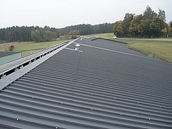 Das Trapezblech 35/207 in der Stärke von 0,75 mm ist bei einem Auflagerabstand von 1,25m, 5,42 KN/m² belastbar. Wir verfügenüber Stützweitentabellen und bauaufsichtliche Zulassungen für dieses Profil. Selbstverständlich eignet sich dieses Profil auch als Unterkonstruktion für Photovoltaik- Anlagen, da hier die geringe Profilhöhe von Trapezblech 35/207 und ein Auflagerabstand von ca. 1,00 m zum Tragen kommen. Auch kann bei Faserzementdach- Sanierungen der Lattenabstand weiterhin genutzt werden, da 1,20 m seltenüberschritten werden.